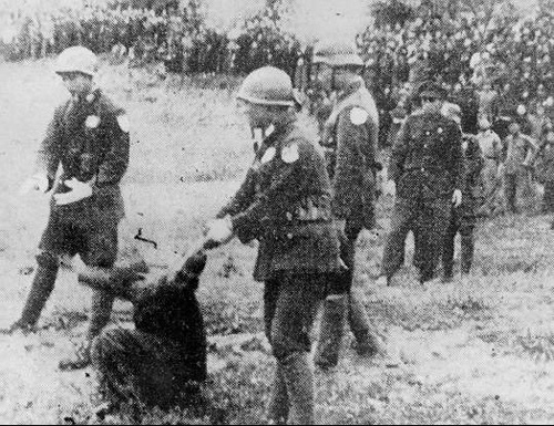 藏在战壕内横洞里的一小群士兵被抓获,他们在防空壕的入口处,不是被枪杀,就是被戮死。然后,他们的尸体被抛进并填埋在战壕内横洞里。也有用坦克的炮口对准被捆绑起来的士兵们进行轰击的。当然,一般处死的方法是用手枪射击的。